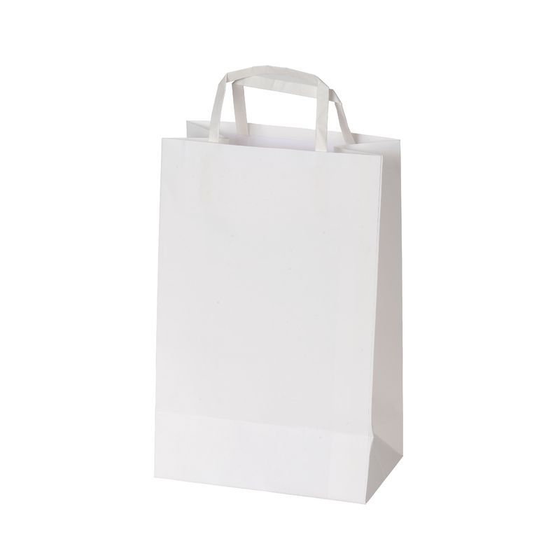 These paper handle bags are a great way to provide strength and carrying convenience. Available in White or Brown, can be printed upon for a variety of purposes and customized for different sizes.